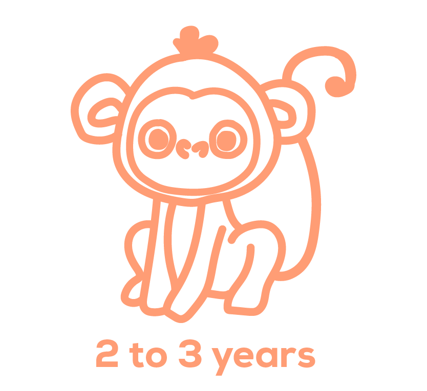 Child-led learning is our focus in the Monkeys Room. This means your child may freely choose and rotate between 3-4 learning stations consisting of fine and gross motor, art, sensory, and movement. They will learn about the alphabet, language, shapes, colors, weather, and the calendar. In addition to intellectual growth, your child will also begin potty training and familiarizing with using cups during mealtimes.